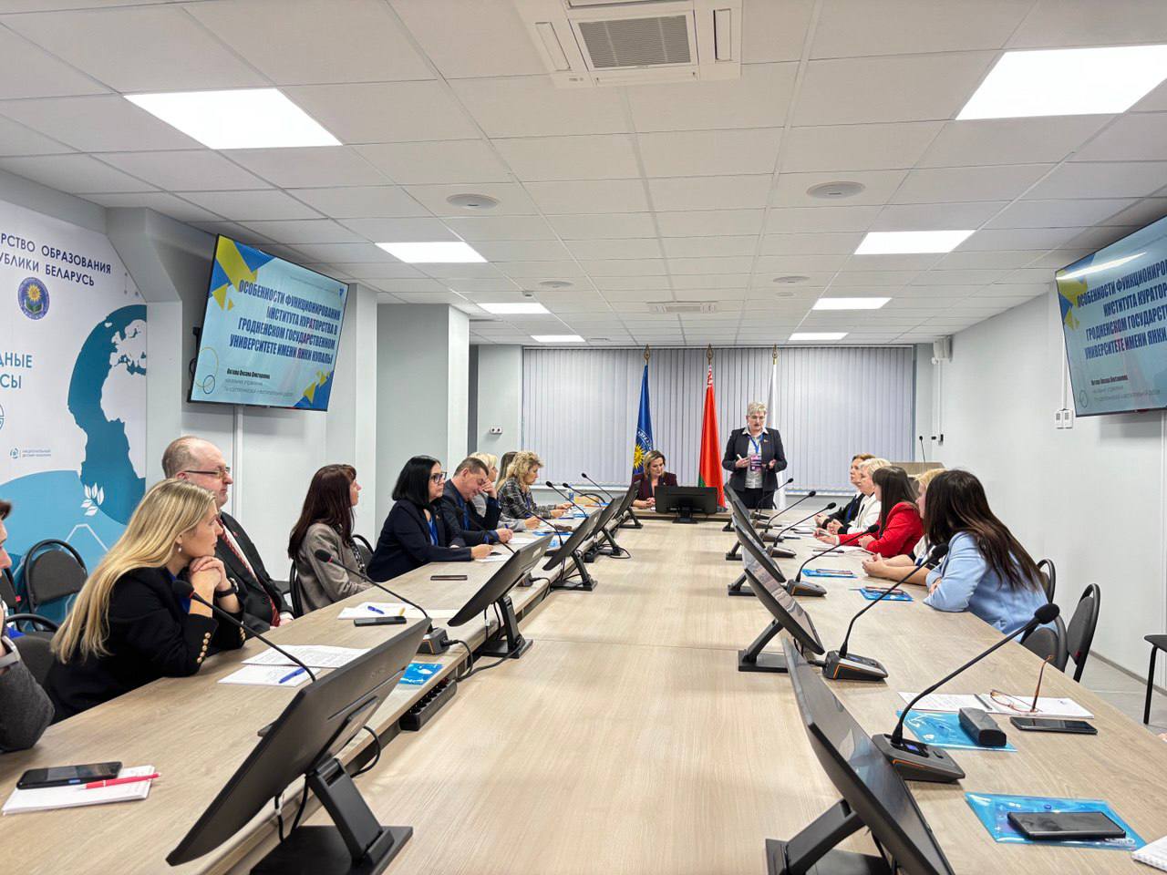 В рамках работы семинара-практикума «Практические инструменты организации работы куратора учебной группы в учреждении высшего образования» участники изучали инструменты для организации работы кураторов, после чего состоялась презентация лучших конкурсных проектов участников по проведению воспитательных мероприятий, информационных часов в учебных группах.