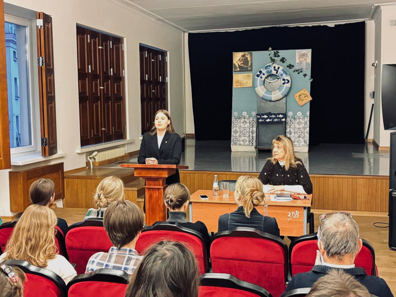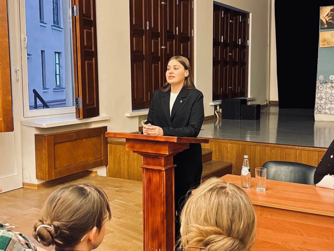 Перед обучающимся выступила первый секретарь Первомайского районного общественного объединения «Белорусский республиканский союз молодежи» Владислава Батура!