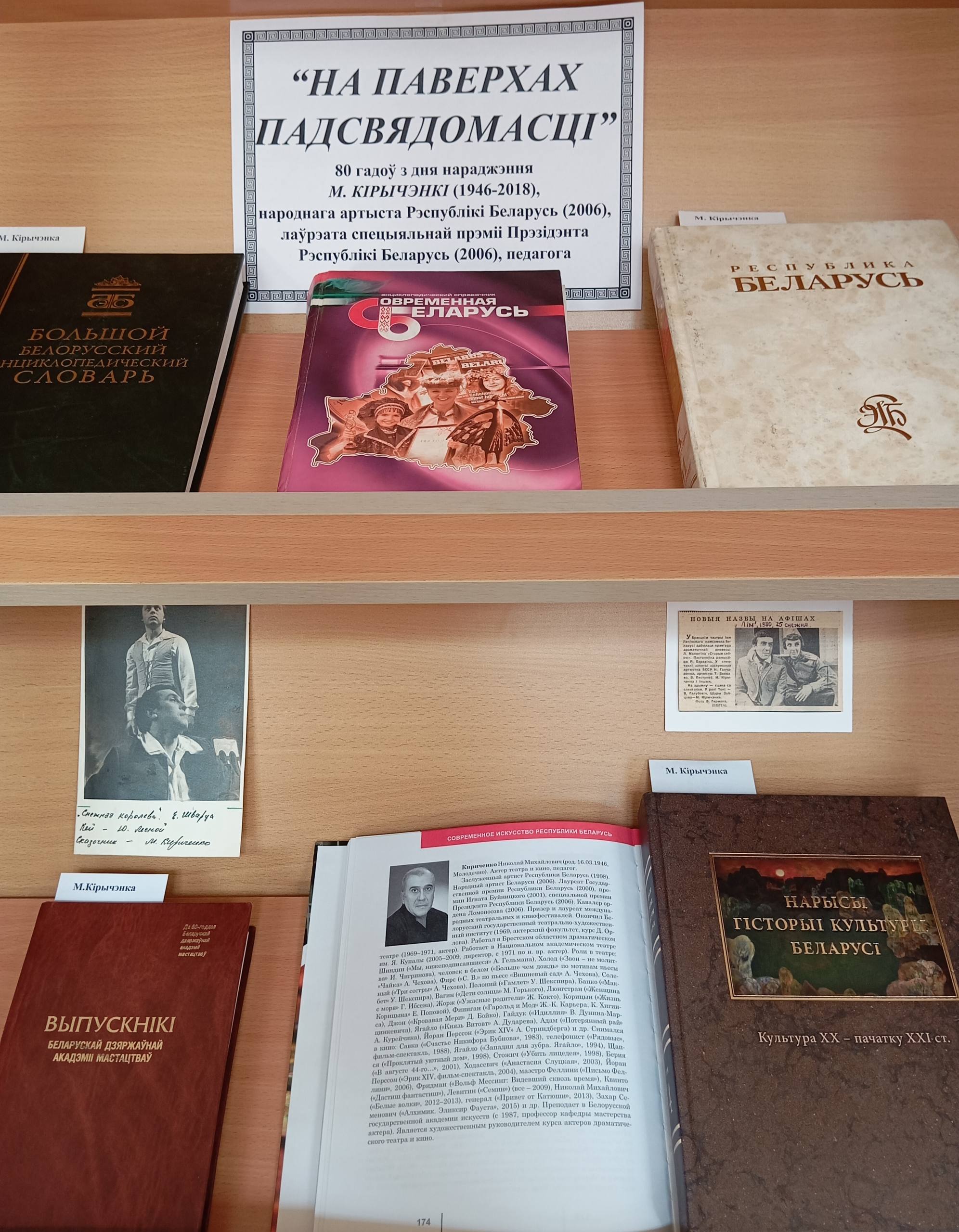 Выстаўка літаратуры бібліятэкі Беларускай дзяржаўнай акадэміі мастацтваў, прысвечаная 80-годдзю з дня нараджэння народнага артыста Беларусі, заслужанага артыста Беларусі, лаўрэата Спецыяльнай прэміі Прэзідэнта Рэспублікі Беларусь, педагога Мікалая Кірычэнкі.