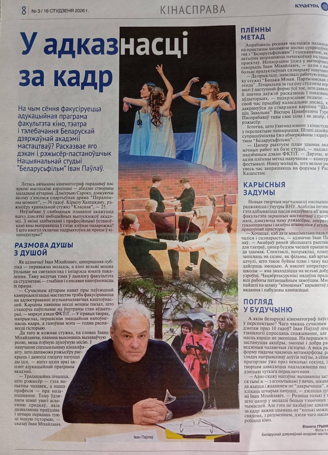 Якім беларускі кінематограф паўстане ў перспектыве? Якія новыя творчыя магчымасці няспынна нараджаюцца ў Беларускай дзяржаўнай акадэміі мастацтваў? На чым сённяДалее
