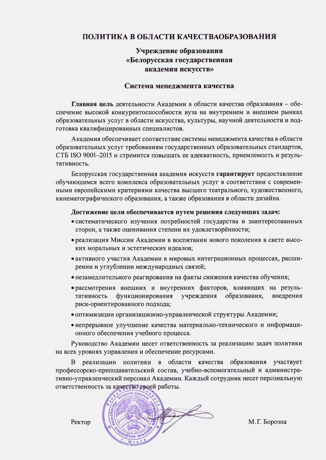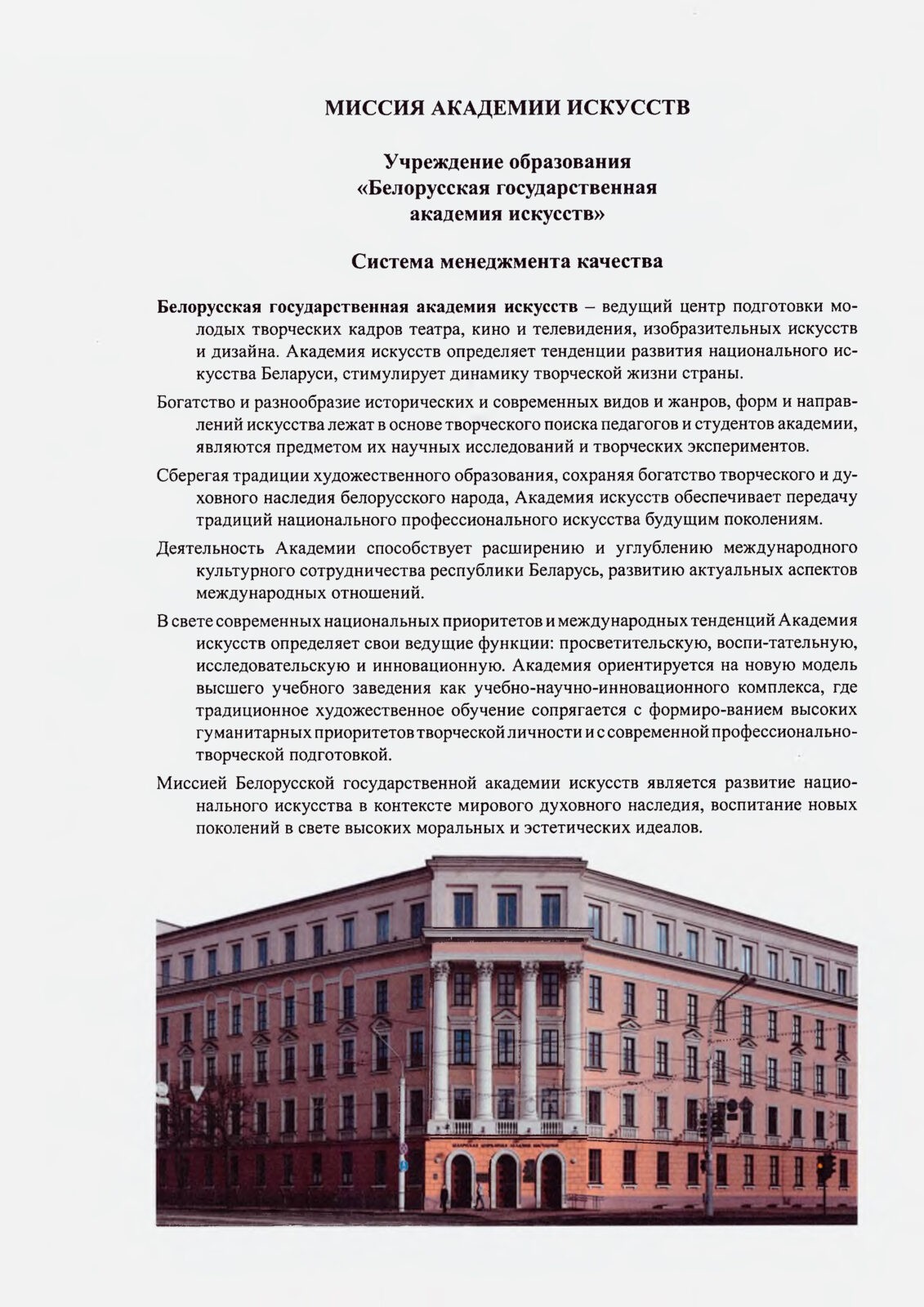 Политика БГАИ в области качества Миссия Академии Искусств Дата последнего внесения правок: сентябрь 2024 года. Поделиться 2024-07-09