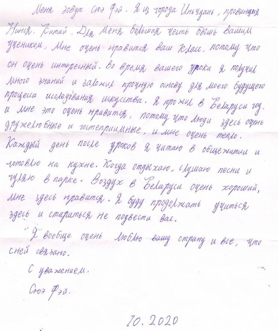 Отзыв Лю Цзяхуэя, магистранта специальности «Искусствоведение», об учебе в БГАИ, 2020