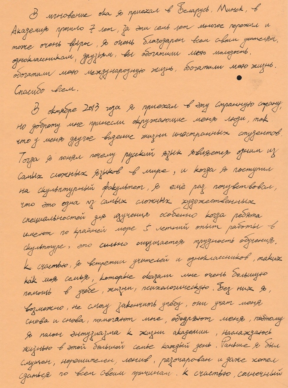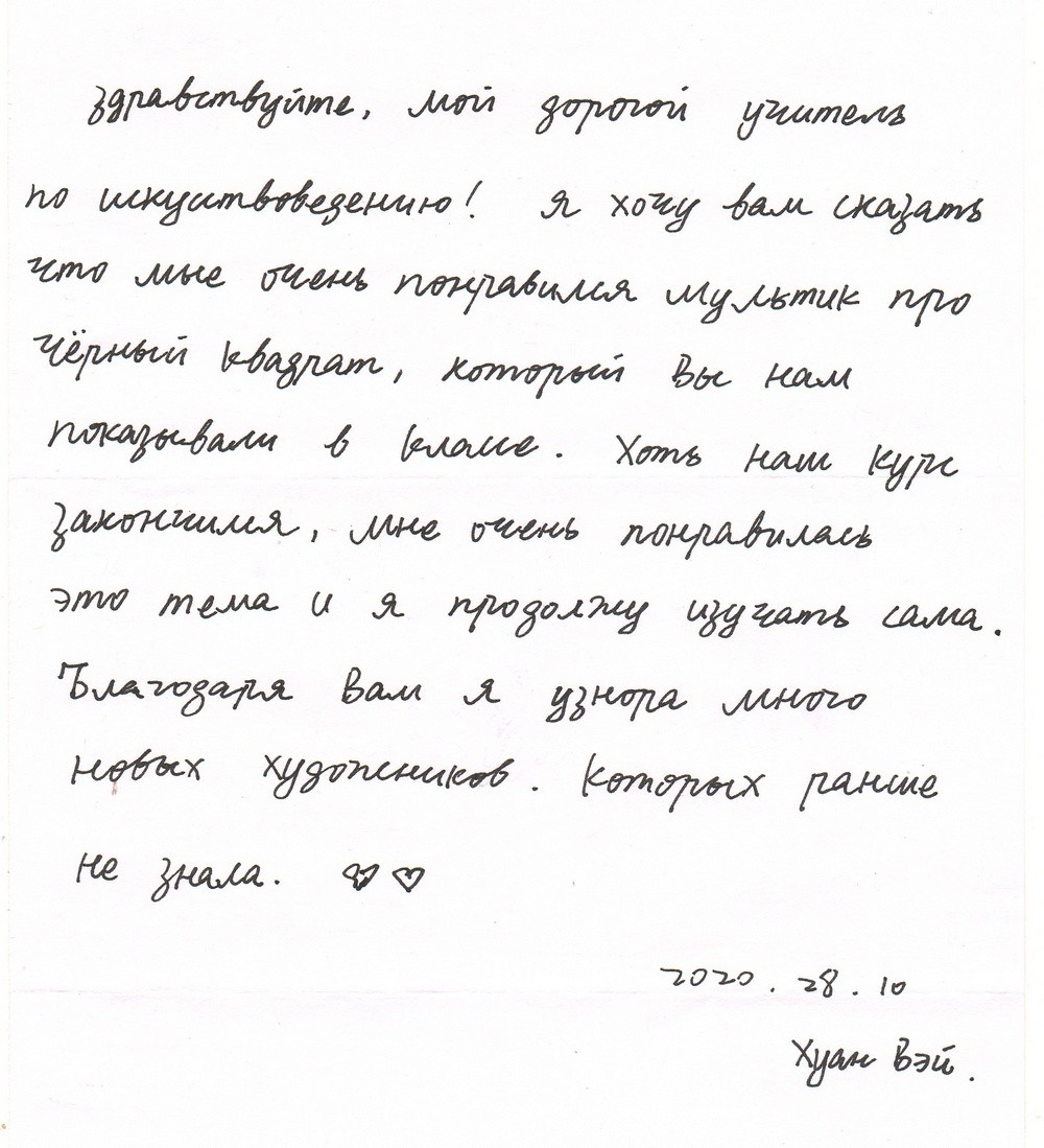 Послание в 2025 год Чжана Цзина, магистранта специальности «Искусствоведение», 2020