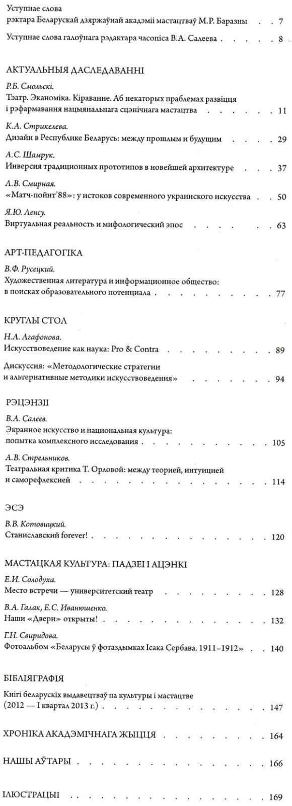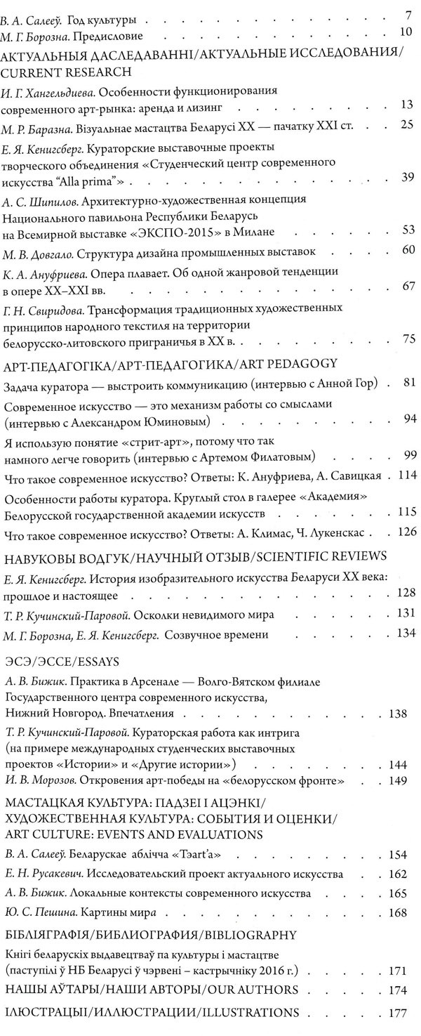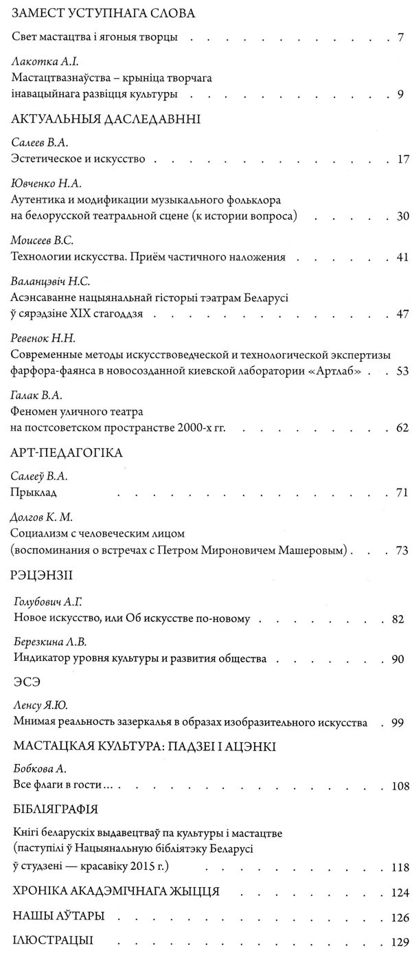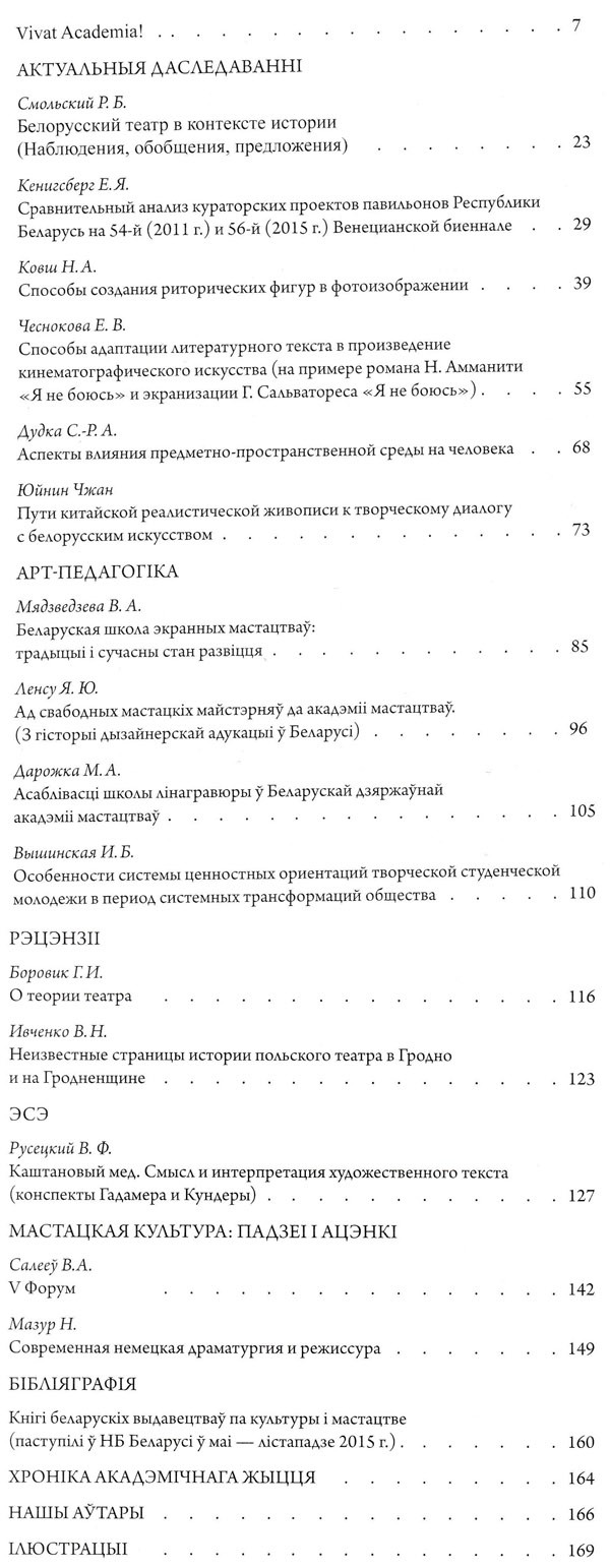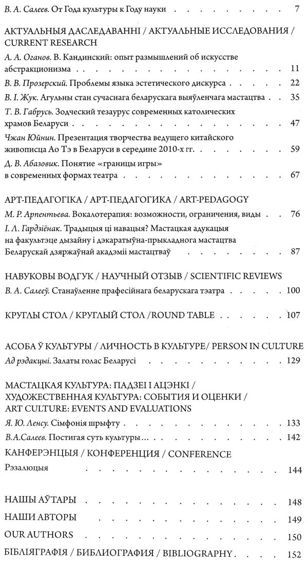 В журнале публикуются результаты научных исследований, проводимых в Белорусской государственной академии искусств, научных учреждениях и вузах Республики Беларусь, зарубежных стран в области искусствоведения, философской антропологии, философской культуры, эстетики.