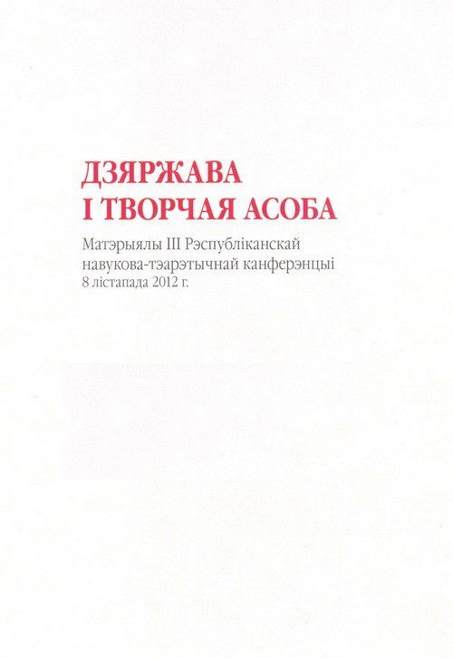 ДЗЯРЖАВА І ТВОРЧАЯ АСОБА. МАТЭРЫЯЛЫ ХII МІЖНАРОДНАЙ НАВУКОВА-ПРАКТЫЧНАЙ КАНФЕРЭНЦЫІ