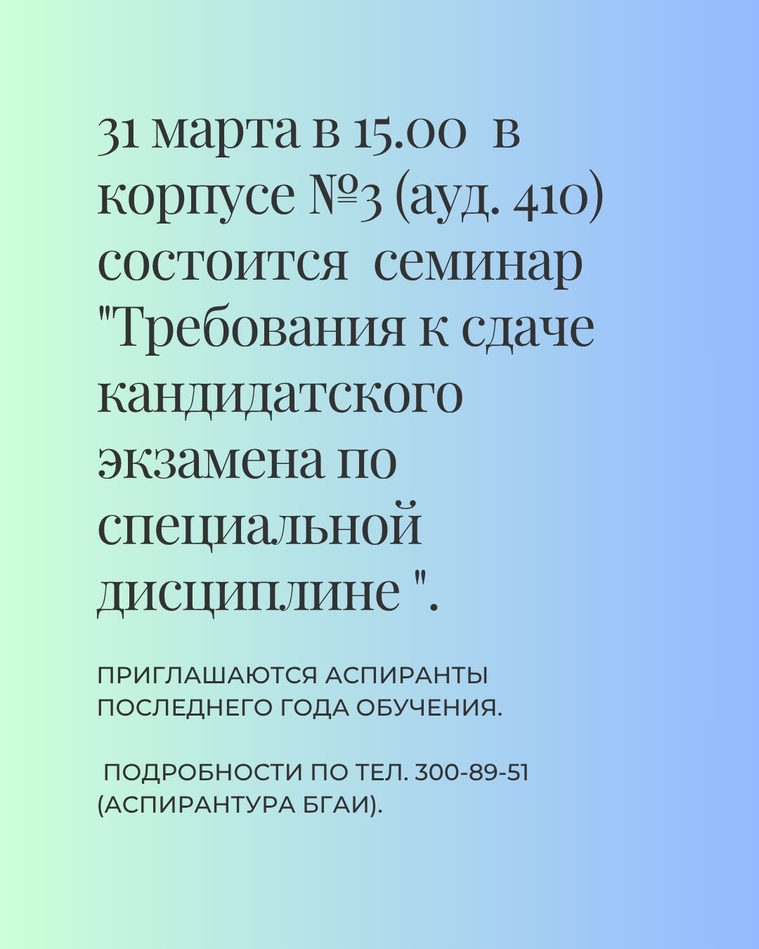 График проведения научных семинаров для аспирантов